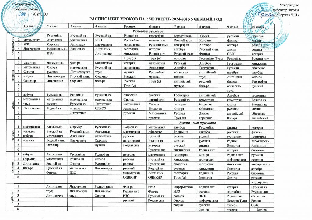 Расписание уроков на 2024-2025 учебный год